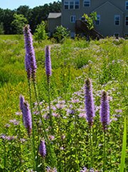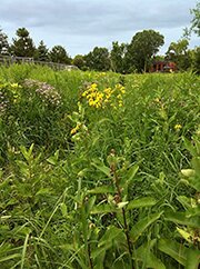 Bioswales and waterway buffers are attractive, deep-rooted native plant corridors located within and along ditches, streams and lakes. They are designed to stabilize the soil, percolate rainwater, filter pollutants and provide habitat for songbirds, butterflies and other beneficial wildlife. Waterway buffers also prevent water currents and waves from eroding the banks.