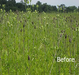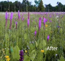 Most prairies are degraded and in peril because native plants and grasses have been choked out and displaced by invasive plants and shrubs. Invasive vegetation outcompete native plants for space, sunlight and nutrients, creating an unattractive monoculture environment with very limited habitat for beneficial wildlife. Prairies restored with native plants and grasses are beautiful and diverse environments abounding with wildflowers and wildlife.